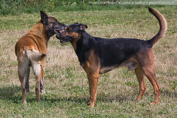 Belgian Malinois and a German Shepherd are facing off in