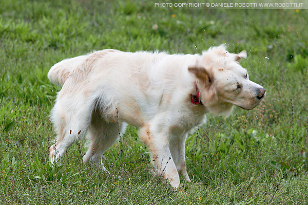 The dog shakes its head, often repeatedly, without shaking other parts of its body. The movement is similar to that exhibited by dogs experiencing pain or discomfort in their ears.