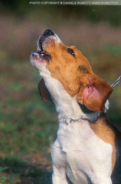 This Beagle is held on leash by his