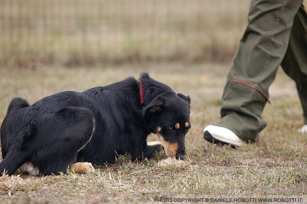 into a down-stay by her handler. When her handler