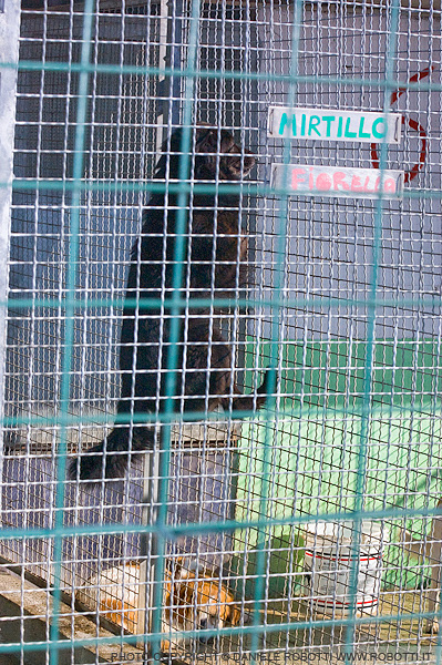 This dog confined to a shelter run leaps against the fencing repeatedly. In the background, another dog is sleeping.