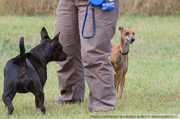 she observes several unfamiliar dogs.