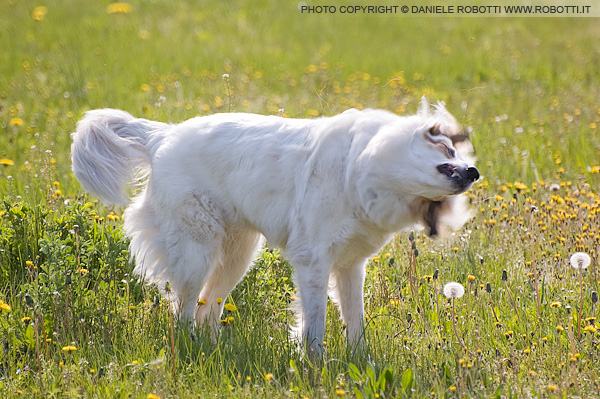 The dog shakes its head, often repeatedly, without shaking other parts of its body. The movement is similar to that exhibited by dogs experiencing pain or discomfort in their ears.