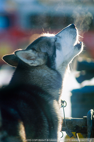 before a sled-dog competition and is howling.