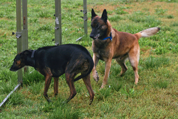 other dogs as she hunches her back.