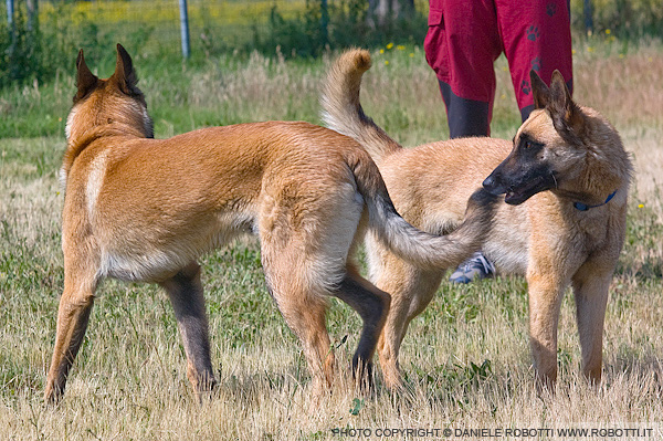 The female Belgian Malinois on the right